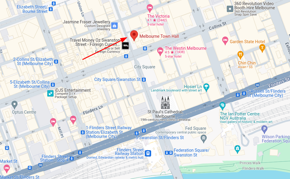 The nearest car park is Wilsons Parking on 172-192 Flinders Lane. Please note that Swanston Street is closed to cars and only vehicles with a special permit can enter Swanston Street. For that reason, we highly recommend public transport as the main mode of transport for attendees. There are drop-off zones on Collins Street that are a short walking distance from the Town Hall Main Entrance.
